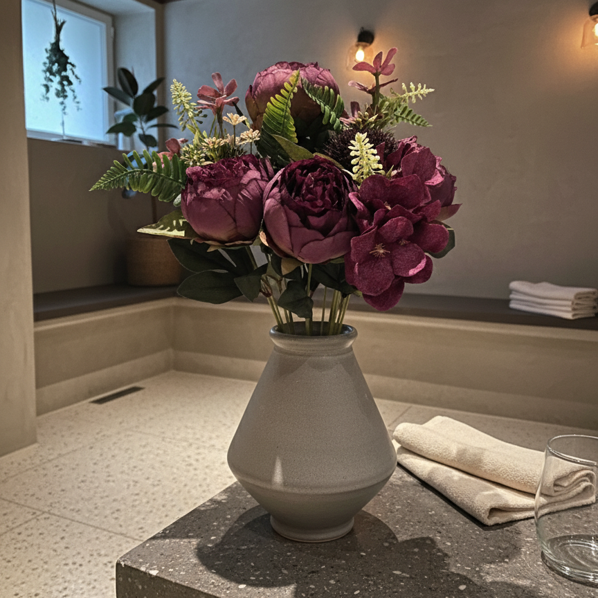 Die Blume dominiert nichts – sie vervollständigt. Dein Raum bleibt deiner: nur runder, ruhiger, stimmiger.