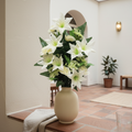 Lysélle No. 57 vereint elegante Lilienkelche mit feinem Beiwerk zu einem schlanken Kunststrauss in Creme. Mit 57 cm Höhe, klarer Linienführung und edler Textur setzt er ruhige, fotografietaugliche Akzente auf Esstisch, Sideboard oder Empfang.