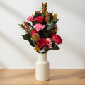 Paeonessa No. 65 vereint üppige Pfingstrosen, texturreiche Hortensien und charaktervolle Disteln mit abgestimmtem Beiwerk zu einem repräsentativen Kunststrauss. Mit 65 cm Höhe und ca. x18 Blütenelementen setzt er souveräne Akzente auf Esstisch, Sideboard oder Empfang – reduziert auf eine zeitlose, fotografietaugliche Präsenz.