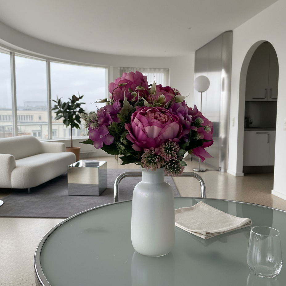 Die Blume dominiert nichts – sie vervollständigt. Dein Raum bleibt deiner: nur runder, ruhiger, stimmiger.